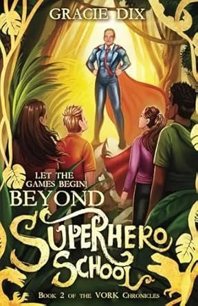 Amazon description: Welcome to Superhero School! Join Oliver, Jess, and all their friends on a mission to destroy the power-hungry, evil villains of Vork. From subterranean sewers to lush jungle, from dinosaurs to dragons, our heroes will be pushed to their limits in ways they’d never imagined. Will their collective Powers—Flight, Morphing, Invisibility, Mind Reading, and more—be enough for them to overcome the malevolence of Vork? Or will they stumble over their own doubts and painful histories? This action-packed journey of friendship, hardship, and humor will take our heroes to thrilling new heights and a deeper understanding of their own place in the world. But will that be enough—or will Vork always be one step ahead.